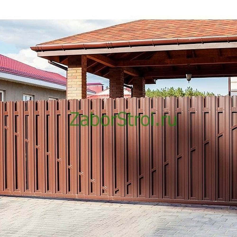 Откатные ворота из евроштакетника с встроенной калиткой